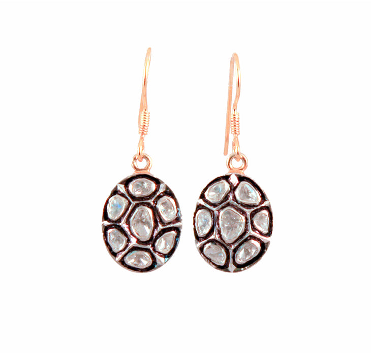 Rough cut diamond turtle shell earrings set in silver with black rhodium finish & 18k gold backing with 9k yellow gold ear wire.